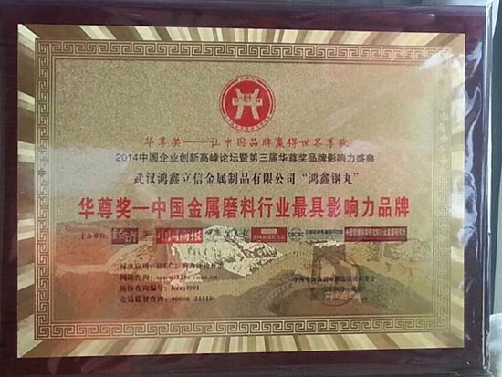 這是在人民大會堂領回的獎牌:華尊獎-國內金屬磨料行業(yè)**有影響力品牌。